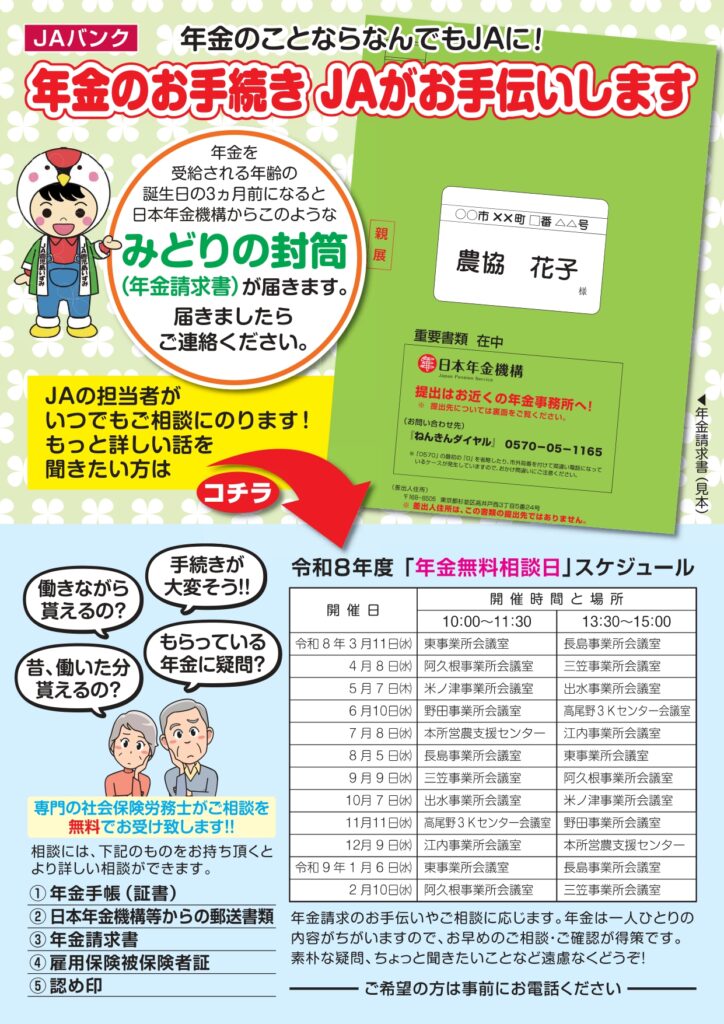 令和8年度「年金無料相談日」スケジュールのご案内