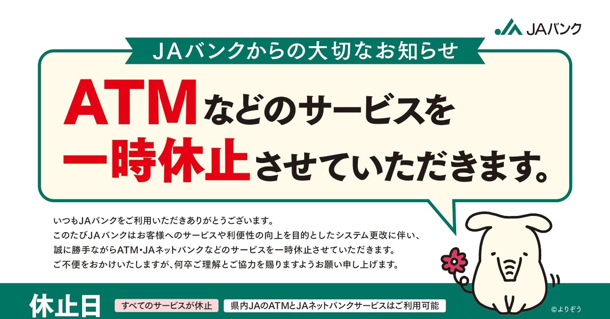 カテゴリー:お知らせ一覧 2025.10.03 ATM等のサービスにかかる一時休止のお知らせ 2025.10.03 JAバンクアプリおよび即時口座振替サービス・Web口座振替受付サービスの一時利用停止について 2025.10.02 JADDO公式LINE1周年キャンペーンの実施について 2025.10.01 広報紙「ほほえみ」10月号を掲載しました 2025.09.29 農業者健診のお知らせ 2025.09.27 テレビ放送のお知らせ 2025.09.26 法人のお客さまの新規口座開設について(お知らせ) 2025.09.01 広報紙「ほほえみ」9月号を掲載しました 2025.08.01 広報紙「ほほえみ」8月号を掲載しました 2025.07.07 令和7年度(令和8年度採用) 第2回職員募集要項について 2025.07.01 広報紙「ほほえみ」7月号を掲載しました 2025.06.01 広報紙「ほほえみ」6月号を掲載しました 1 2 3 次へ >