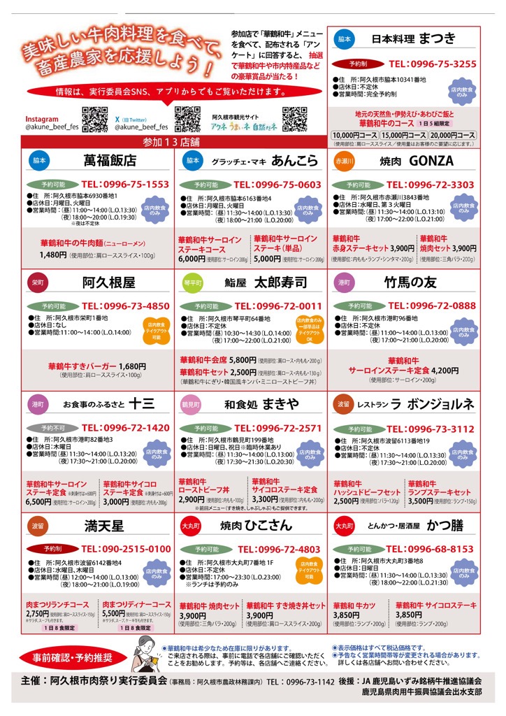 その「華鶴和牛」を使用し、阿久根市内13店舗で趣向を凝らした料理を提供するイベント「華の牛肉祭りAKUNE」をただいま開催中です。